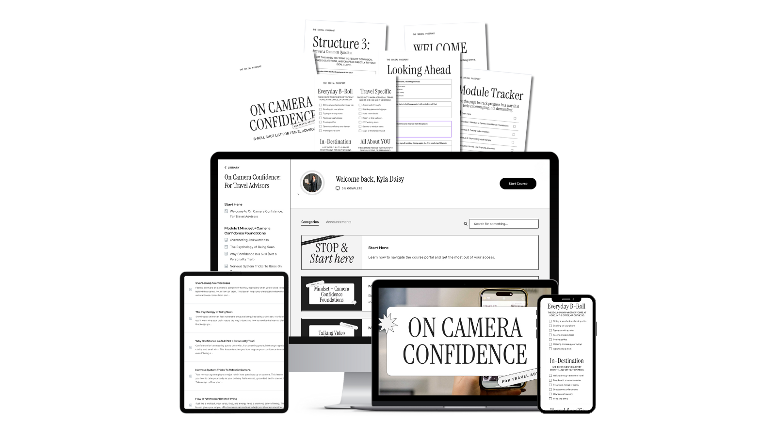 On-Camera Confidence is one of the four signature courses inside The Social Passport Core 4 Bundle, designed to work together to help travel advisors create, edit, and monetize content with clarity and confidence.